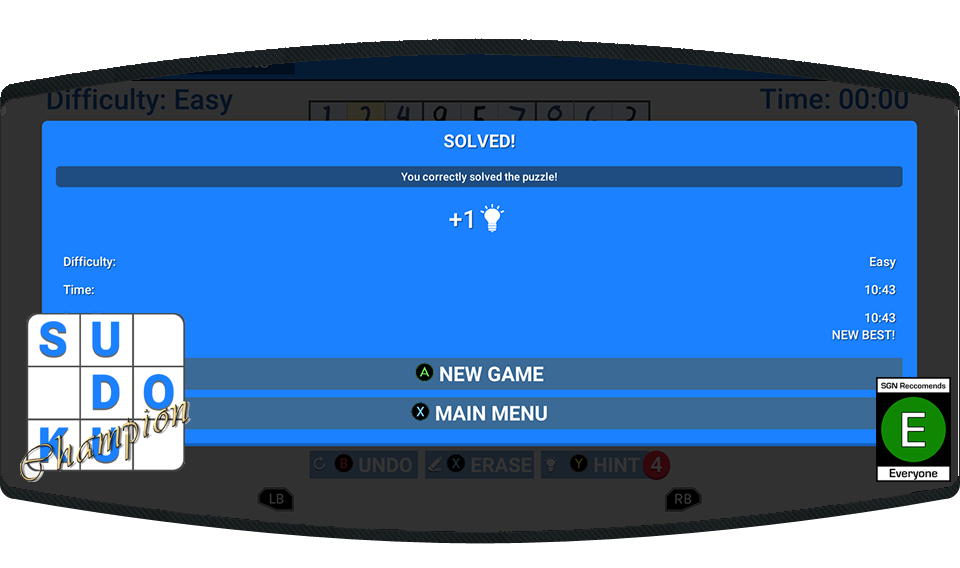 Are you ready to take on the Sudoku challenge and become a true Sudoku master? "Sudoku Champion" for Xbox awaits your skillful touch. Download the game today and let the number-crunching adventure begin!